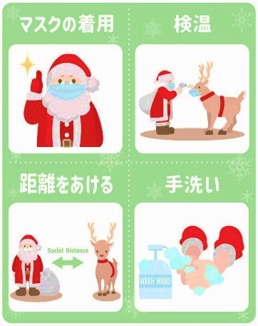 不特定多数の人々が長時間に渡って同じ場所にとどまるような活動は避け、マスク着用や手指消毒の対策を含めて年末のイベントを実施いたします。