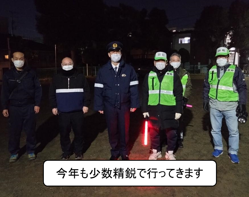 歳末クリーン作戦で皆様と共に町内・公園などを綺麗に清掃し、歳末防犯・防火パトロールで町内を巡回して防犯・防災に努めました。パトロールでは初の取り組みとして町内の危険個所で定点監視を行い、無灯火自転車の方や歩きスマホの方に対し、声をかけて注意喚起させていただきました。皆様も安全な通行には十分ご注意いただければと思います。