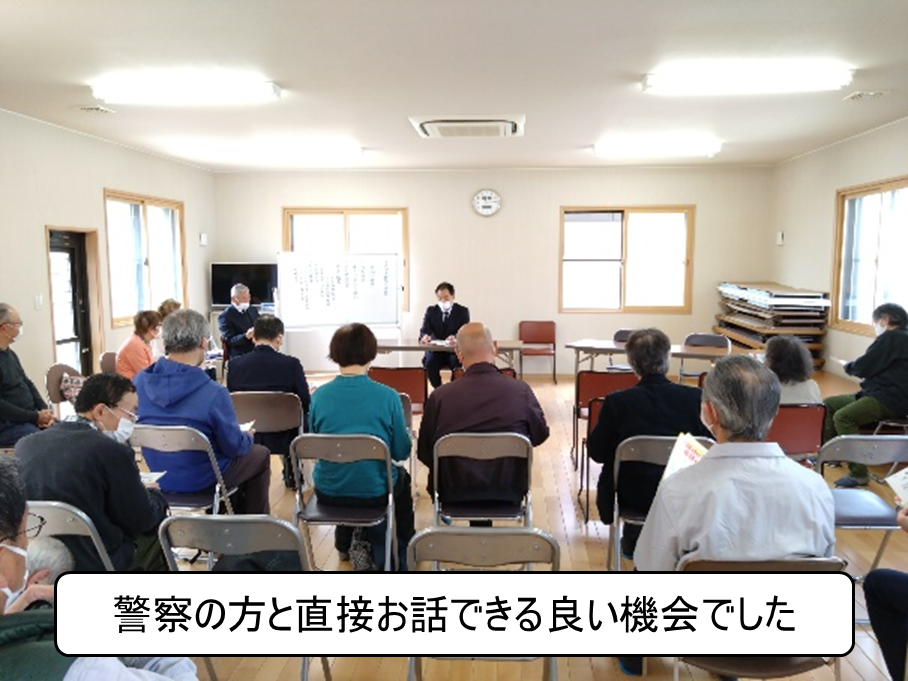 定期総会後、行徳警察署生活安全課の椎名係長に、防犯についての講演を実施していただき、行徳警察署管内における防犯の重点項目についてお話がありましたので紙面で概要をお知らせいたします。