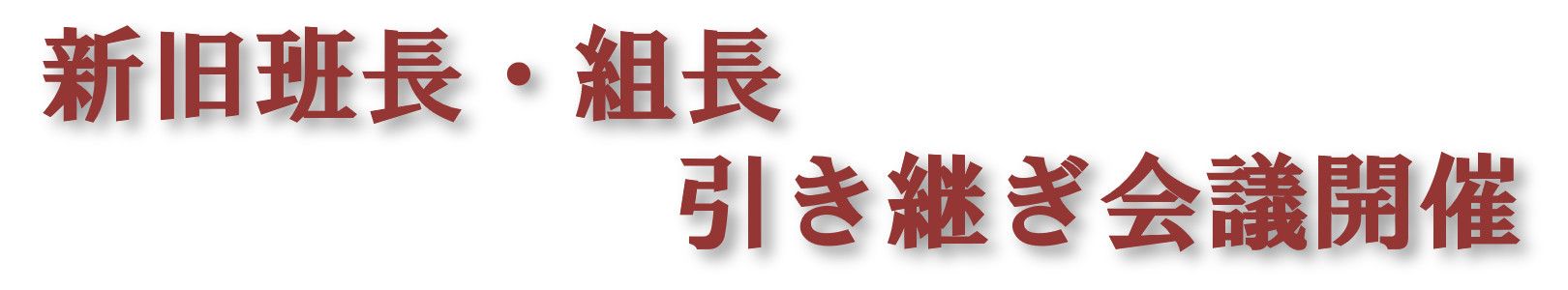 会議中に担当者間の調整も行われ、会議は閉会いたしました。ご参加いただきありがとうございました。当日不参加だった班長・組長さんには森総務部長が個別に対応させていただきました。本年度の班長さん、組長さん、一年間よろしくお願いいたします。