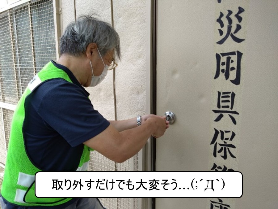 施錠、開錠がスムーズになり、防犯パトロールやイベントで倉庫を使用する各役員も感動です。多忙の中、備品調達や交換作業を担当された防犯交通部杉原さん、ありがとうございます。