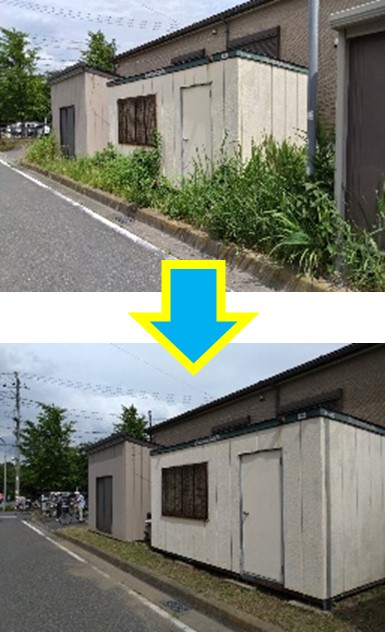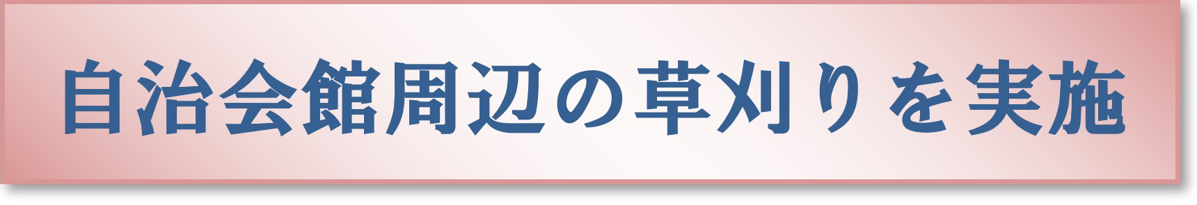 今年は天候の関係なのか、福栄連合自治会館周りの雑草が例年より繁っていたため、6月24日(土)に役員有志で草刈りを行いました。人の目につきやすい道路に面した倉庫周辺は念入りに行い、さっぱりとしました。