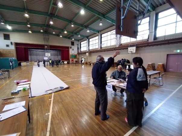 1月20日(土)南新浜小学校体育館における「避難所開設」の訓練として、当自治会の「南新浜小学校区防災拠点協議会メンバー」が参加いたしました。