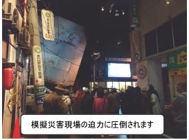 今年のメインは、有明の東京臨海広域防災公園「そなエリア」です。災害発生後は自治体などの支援体制(公助)が十分に整っておらず、自力で生き残ること(共助、自助)が求められます。その目安は3日間、72時間と言われています。防災体験「東京直下 72hTOUR」は、マグニチュード7.3、最大深度7の首都直下地震の発生から避難までを体験し、タブレット端末を使ったクイズに答えながら生き抜く知恵を学ぶ防災体験学習ツアーです。そなエリアに設けられた模擬災害現場は非常にリアルで、訓練施設にいるとは思えないほどです。参加者は熱心にサバイバルの知識の習得に努めていました。