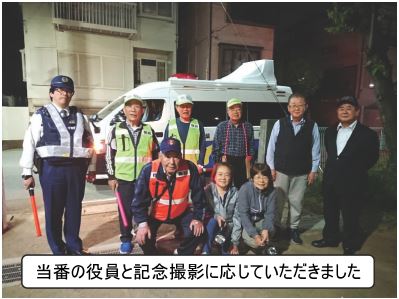 自治会重点活動と位置付けている「自主防犯防火夜間パトロール」は昨年度より月に2回を目標に実施しております。