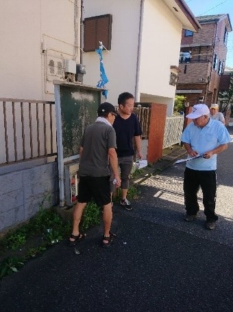 台風15号が通過した10月13日(日)に、自治会会長、副会長、防火防災部メンバーで町内を視察いたしました。家屋などに大きな被害は見受けられませんでしたが、掲示板や掲示幟(のぼり)の一部が破損した箇所がありました。破損したものは撤去し、日を改めて修繕などの対応を検討していきます。