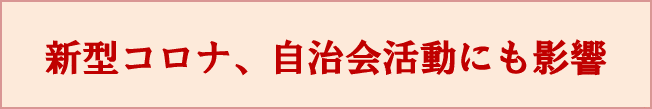 新型コロナウイルスの感染拡大防止のため、自治会活動に影響が出ております。特に「三密」となる活動については、実施方法変更や中止を決定しております。