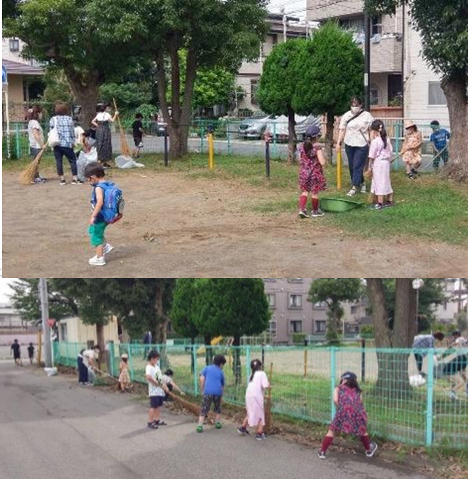 去る7月12日(日)の午前9時から10時まで、空とぶ子ども会による湊新田公園の清掃があり、子ども13人と大人12人が参加しました。
