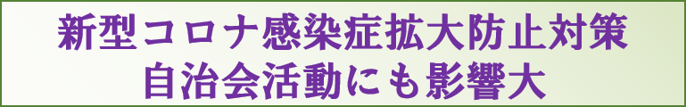 自治会だより126号でお知らせいたしました通り、新型コロナウイルスの感染拡大防止のため、引き続き自治会活動に影響が出ております。特に「三密」を避けることが困難な活動については実施を慎重に検討してまいります。