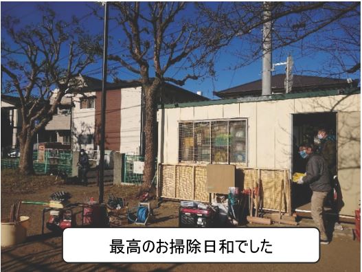 湊新田公園に常設している防災倉庫内整理を12月20日(日)に役員数名で実施いたしました。昨年は納涼夏祭り、もちつき大会、クリーン作戦全てが中止を余儀なくされてしまい、倉庫を開けて物品を出し入れする機会がなかったため、このタイミングでの実施となりました。