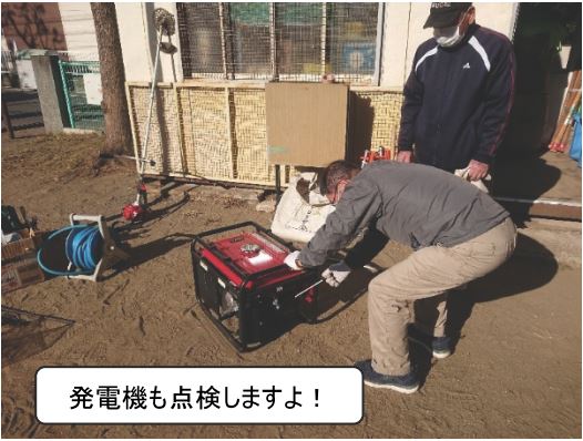 用途ごとに備品をまとめ、汚れや傷みのひどいものは破棄するなどいたしました。倉庫整理に併せて発電機の動作点検も実施し、問題なく動作することを確認しております。寒い中参加された皆様、使えなくなった旧発電機の特殊ごみ廃棄にご尽力いただいた皆様、ありがとうございました!